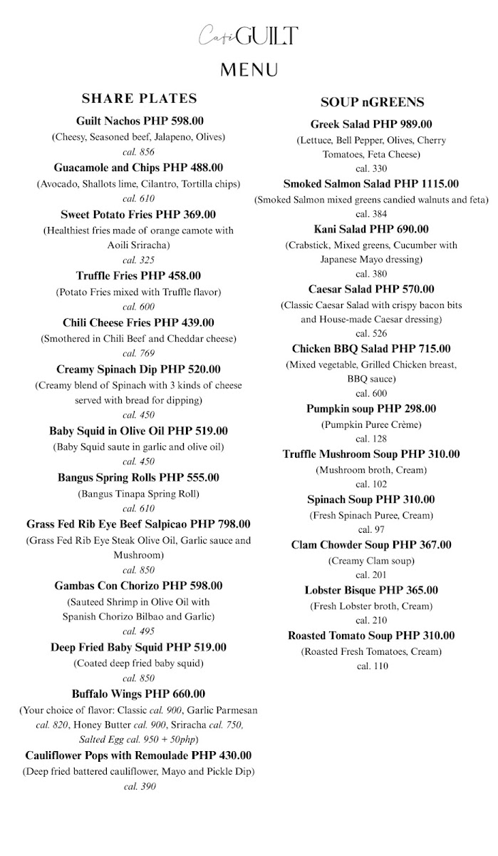 Cafe Guilt, located in the vibrant Scout area of Diliman, Quezon City, offers a unique blend of cozy ambiance and diverse culinary options. Guests are welcomed into a bohemian-inspired space that’s perfect for both intimate meals and casual coffee breaks. Known for its generous portion sizes, patrons rave about standout dishes like the flavorful chorizo shrimp pasta and tender T-bone steak. While some menu items may vary in quality, the inviting atmosphere, pet-friendly approach, and attentive staff contribute to an overall enjoyable dining experience. Cafe Guilt strikes a balance between hearty meals and a warm, Instagrammable environment, making it a worthwhile stop.